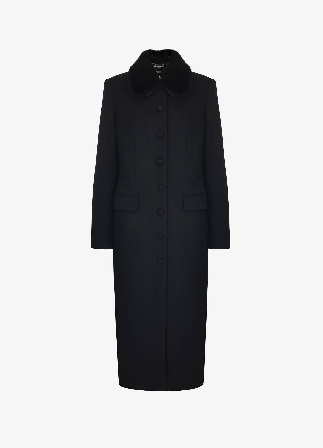 Пальто миди "Купава" черного цвета. Очерченная линия плеча и прямой силуэт создают элегантный и собранный образ. Воротник дополнен съёмным из меха норки в тон изделию. Обтяжные пуговицы и кружевной подборт становятся знаками безупречного внимания к деталям. Пальто легко дополнит вечерний образ и станет стильным элементом базового гардероба. На подкладке.