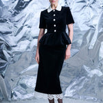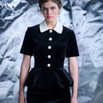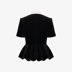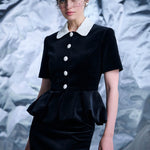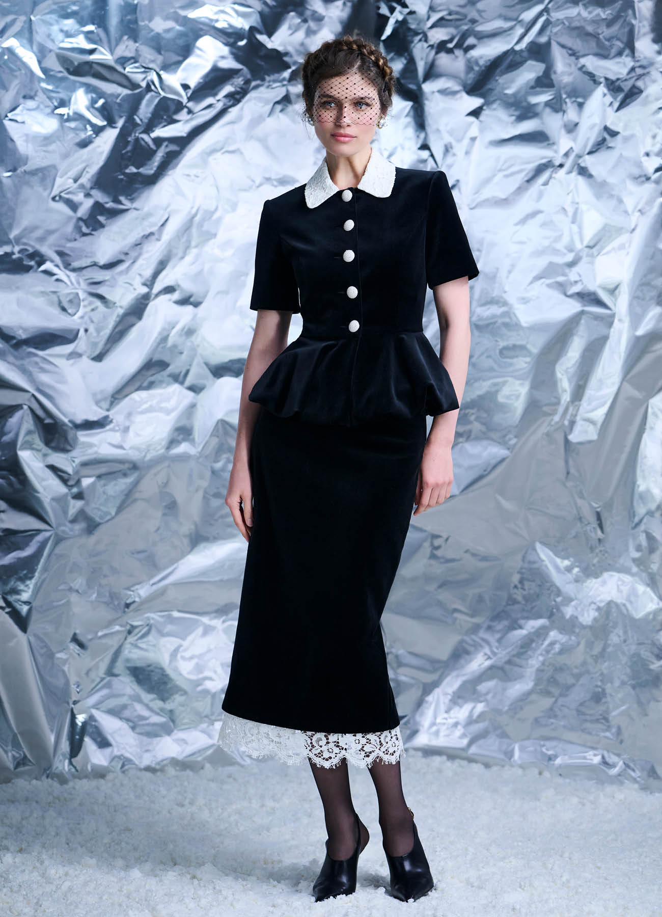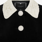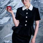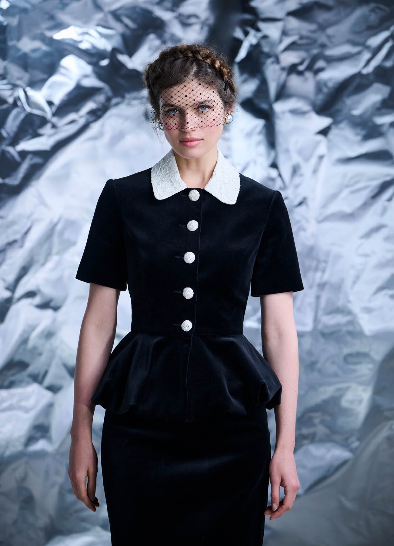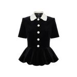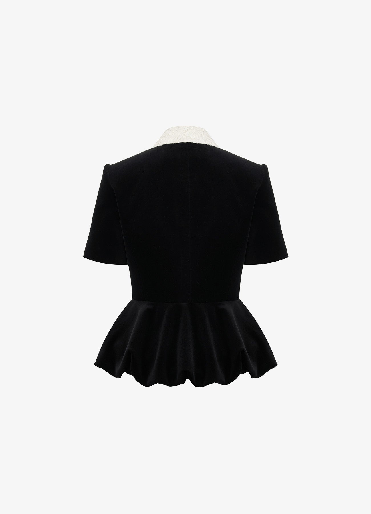 Жакет "Голубка" из бархата. Модель длиной до бедер с акцентом на талии в виде пышной баски. Горловина украшена акцентным отложным воротником из молочного кружева на подкладке в тон. Жакет застегивается на металлические пуговицы, украшенные россыпью мелких жемчужных бусин. Дополните комплектной юбкой из бархата "Голубка" для завершения праздничного  образа. На подкладке.