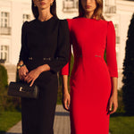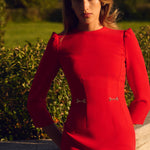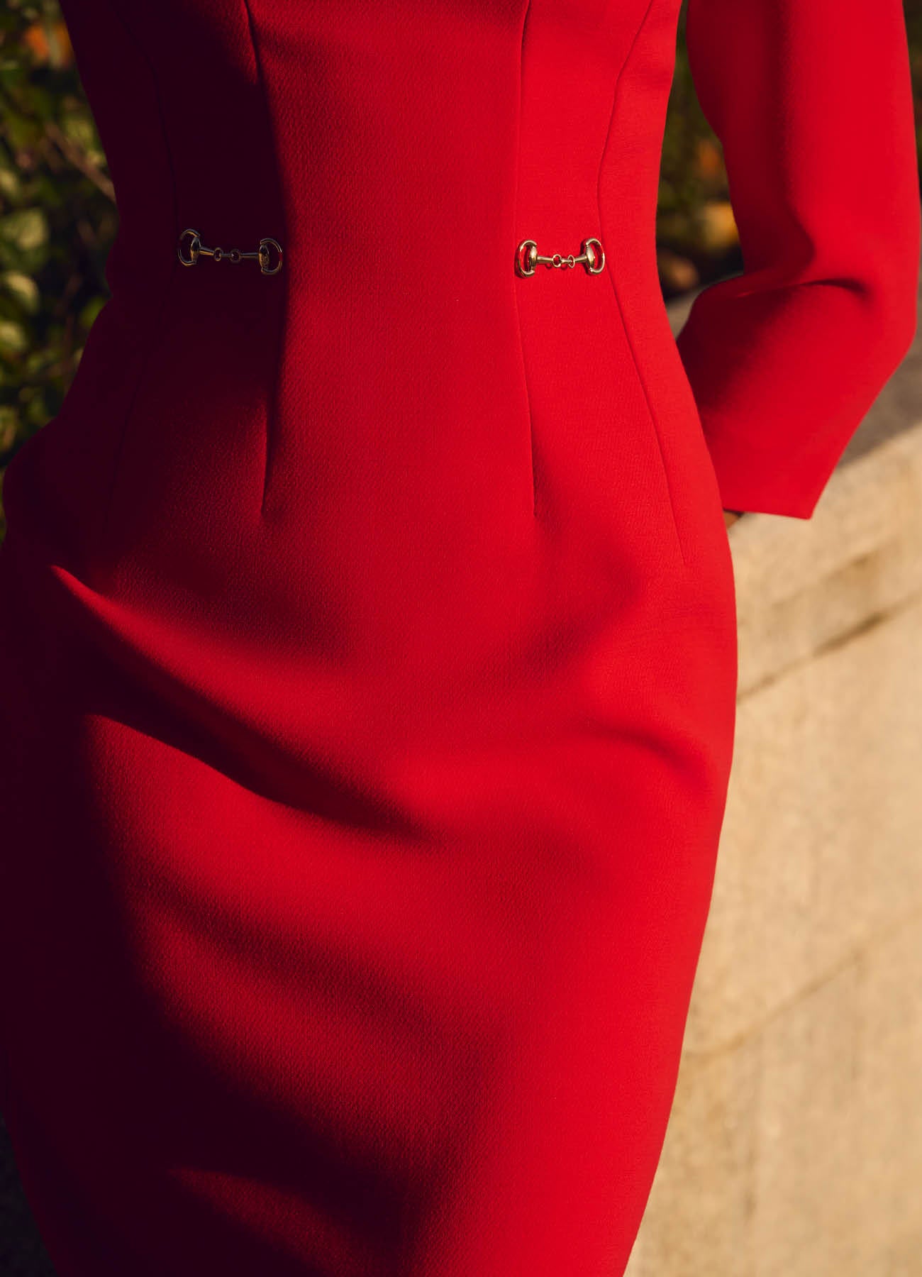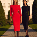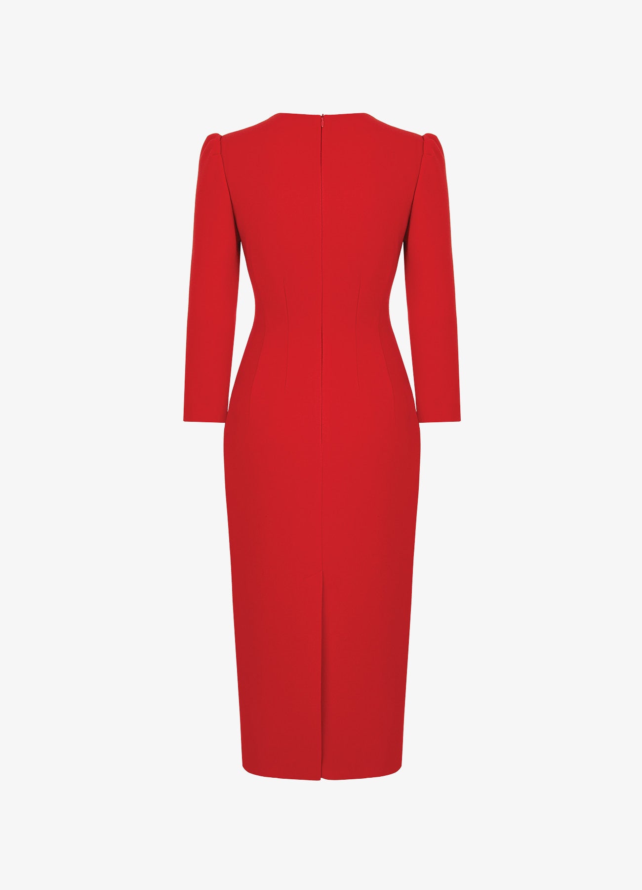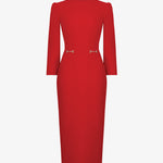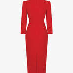 Платье миди из костюмной ткани, которая хорошо держит форму и практически не мнется. Акцентные детали подчеркивают талию и моделируют силуэт. Легкий и приятный телу подклад не позволит выделяться белью под вещью.