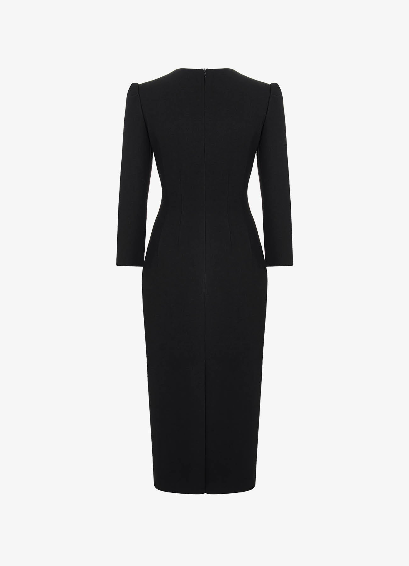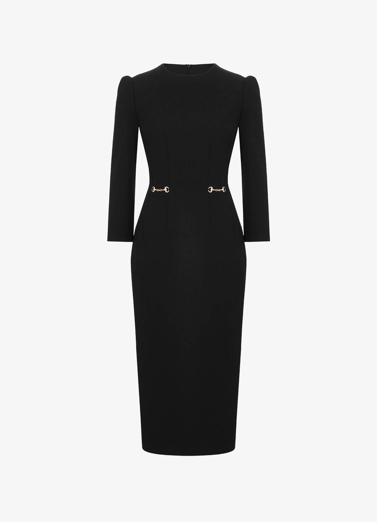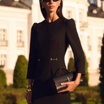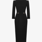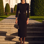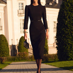 Платье миди из костюмной ткани, которая хорошо держит форму и практически не мнется. Акцентные детали подчеркивают талию и моделируют силуэт. Легкий и приятный телу подклад не позволит выделяться белью под изделием.