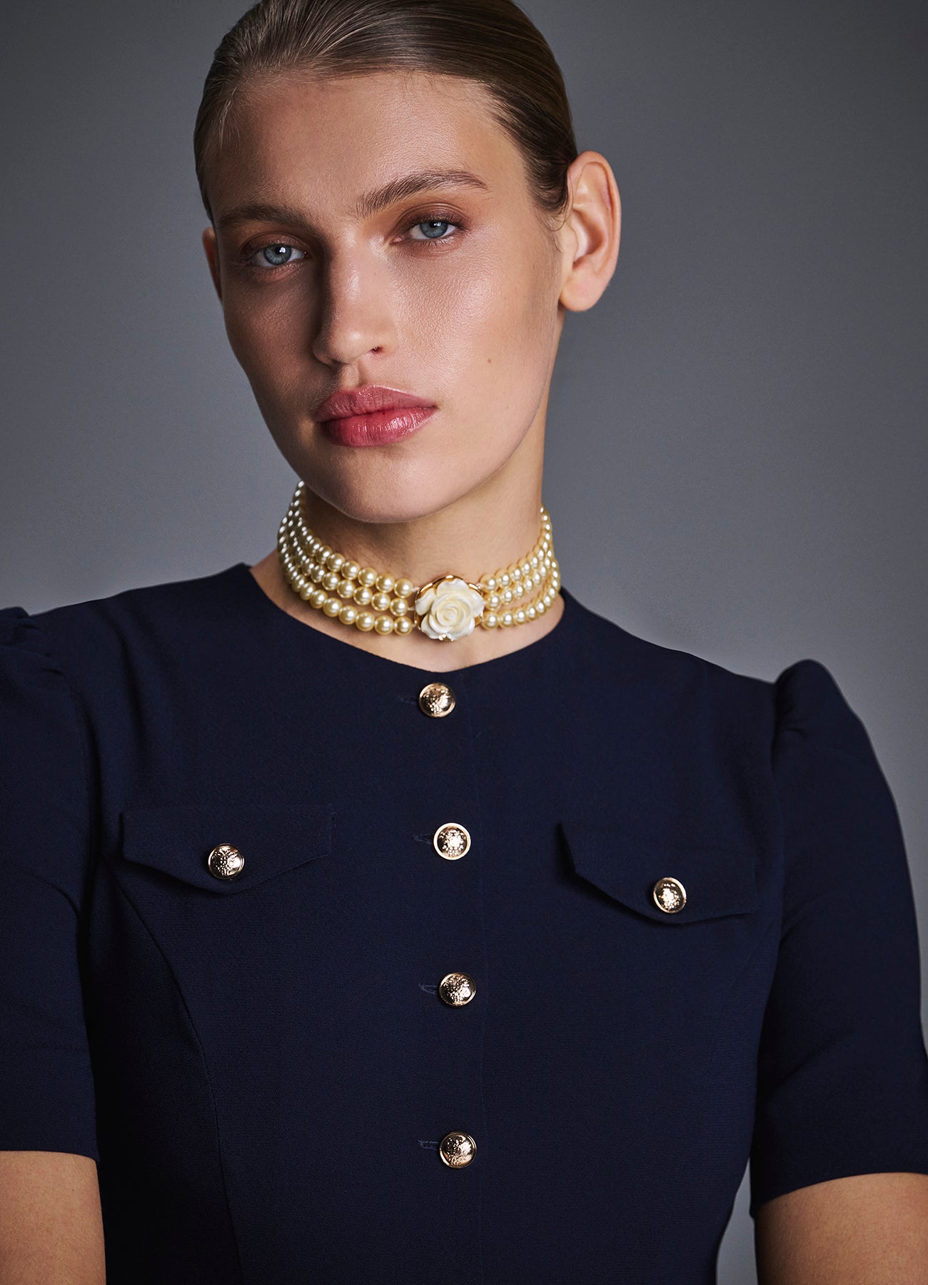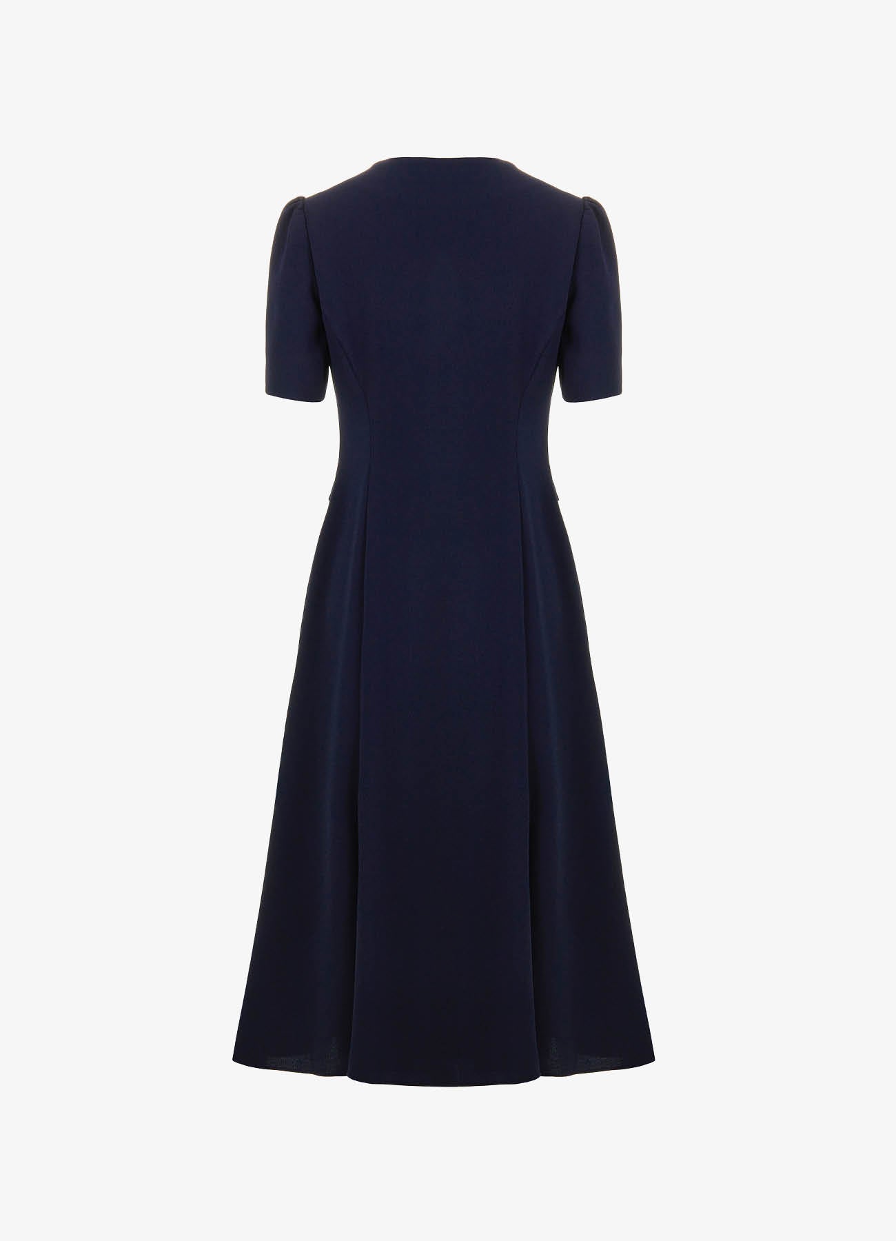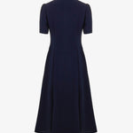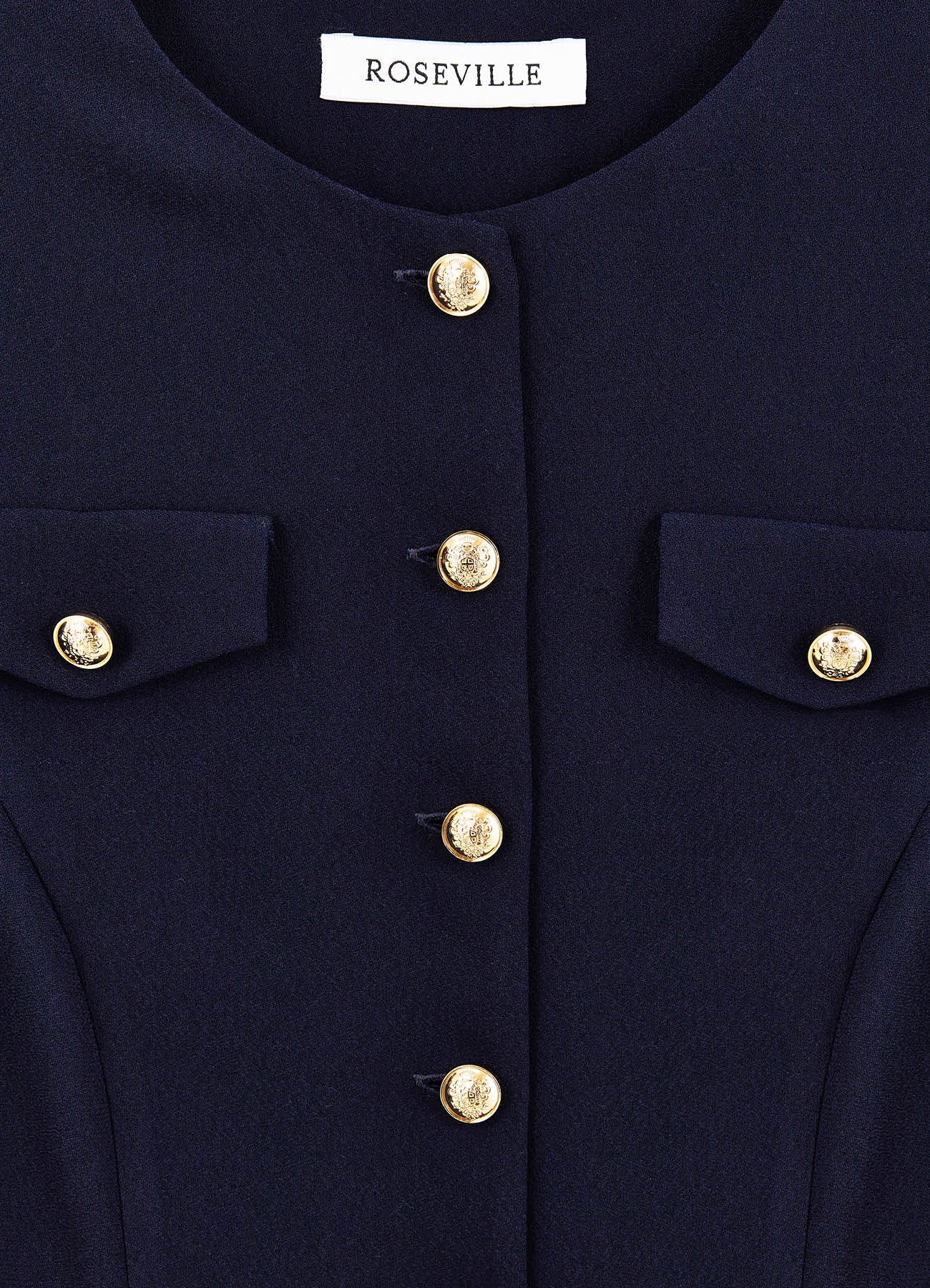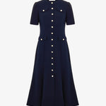 Платье из мягкой ткани на основе вискозы с легким расклёшенным силуэтом. Модель с короткими рукавами и четырьмя накладными карманами, украшенными золотистыми пуговицами. Вертикальный ряд пуговиц визуально вытягивает силуэт, создавая женственный и утончённый образ. Идеально для офиса, прогулок и повседневных выходов. На подкладке.