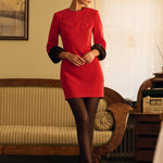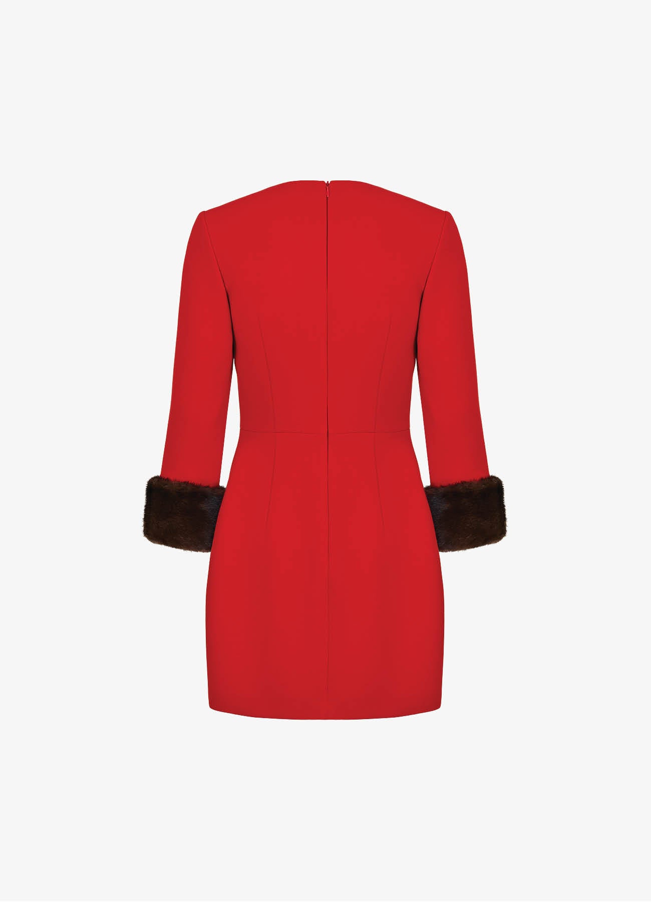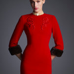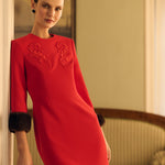 Платье Жар-птица мини с меховыми манжетами