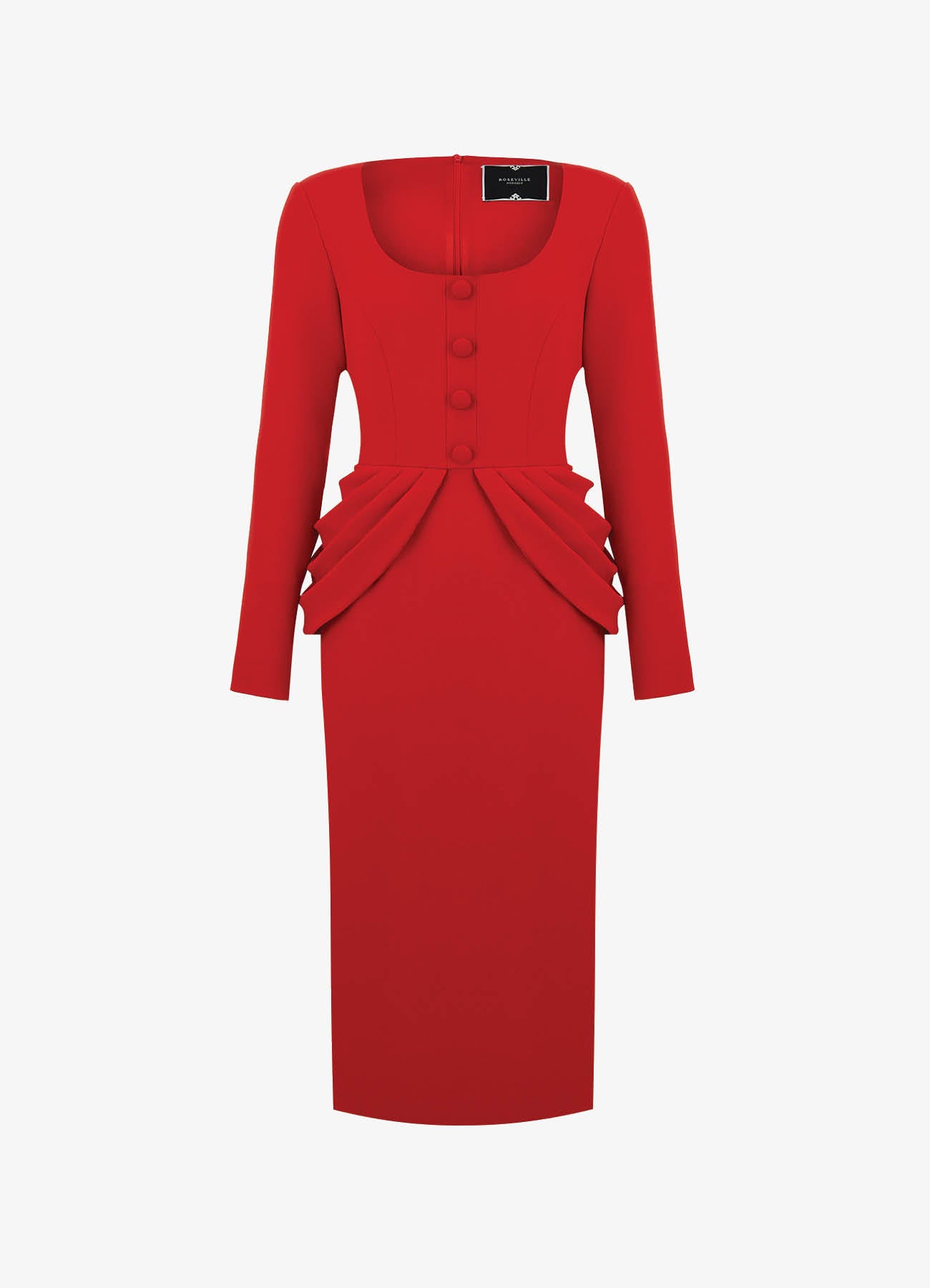 Платье-футляр "Зарница" из костюмной ткани насыщенного красного цвета — элегантная интерпретация классического силуэта. Приталенная форма и декоративная баска подчеркивают силуэт, вырез-каре и длинные рукава создают гармоничный баланс строгости и женственности. Декоративная застёжка на обтяжные пуговицы. На подкладке.