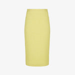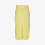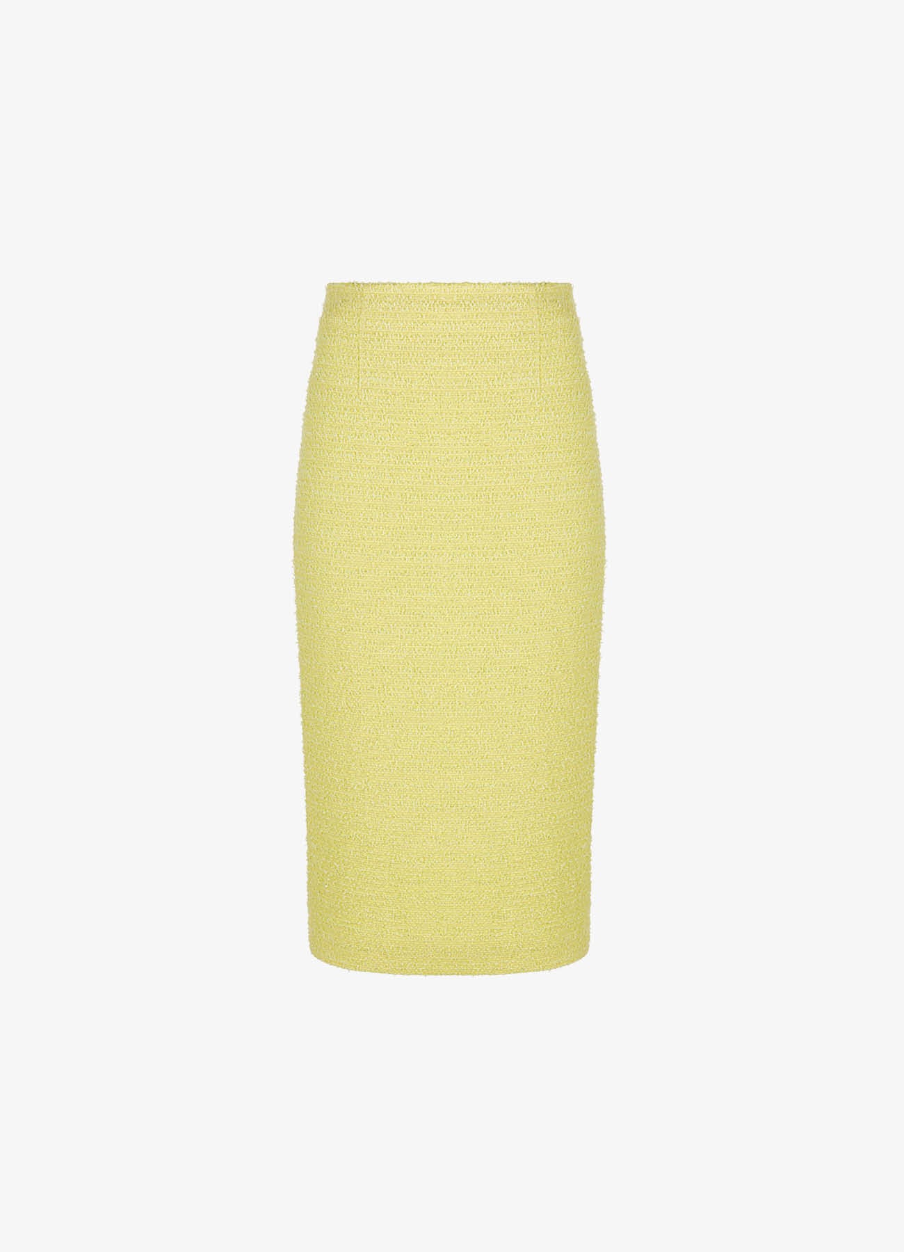 Юбка-футляр яркого лимонного цвета. Модель выполнена из мягкого хлопкового букле, произведенного в Италии. Можно носить вместе с жакетом в тон для создания total look или сочетать с рубашками и топами. Застежка на молнию, на подкладке.