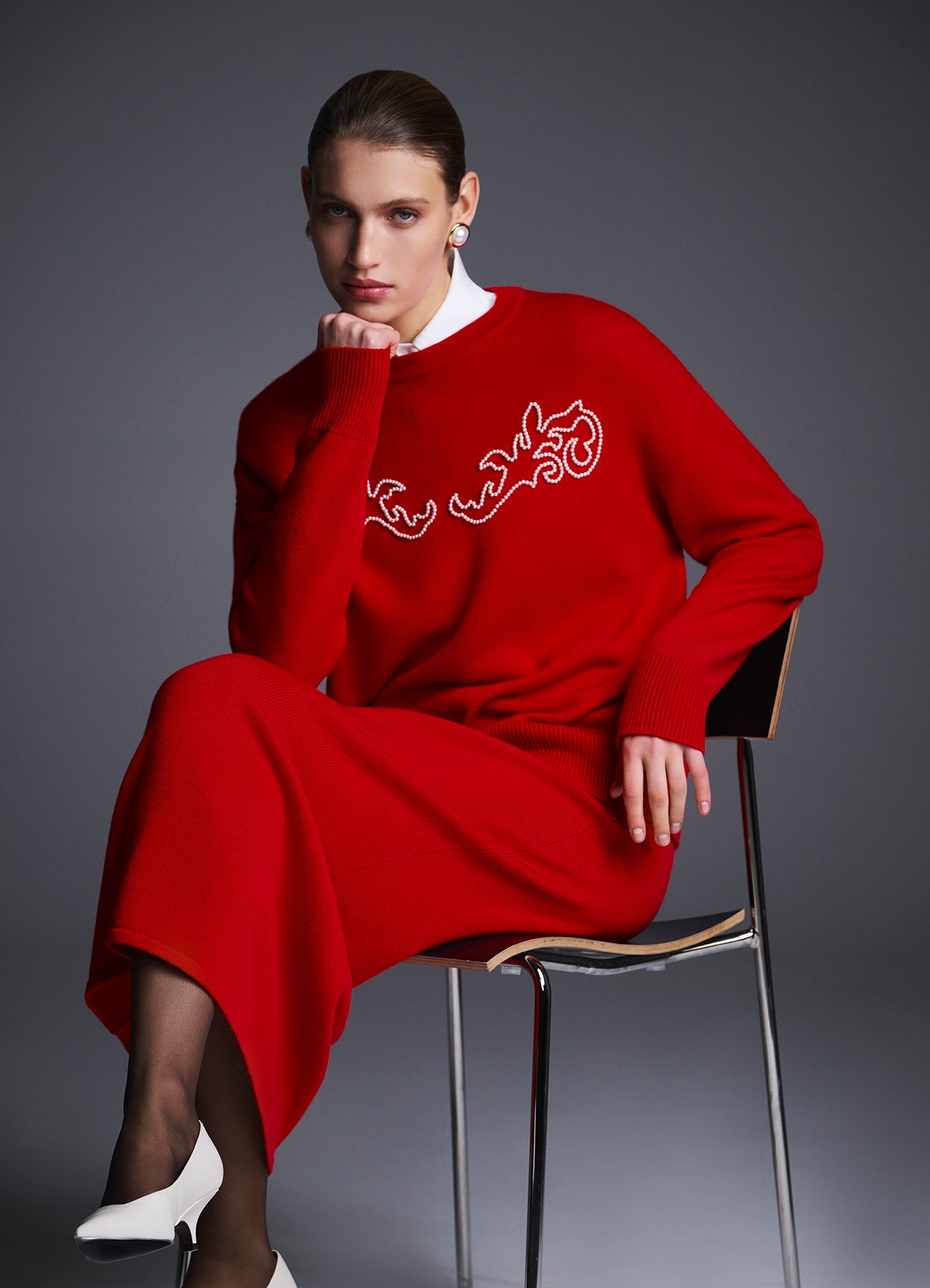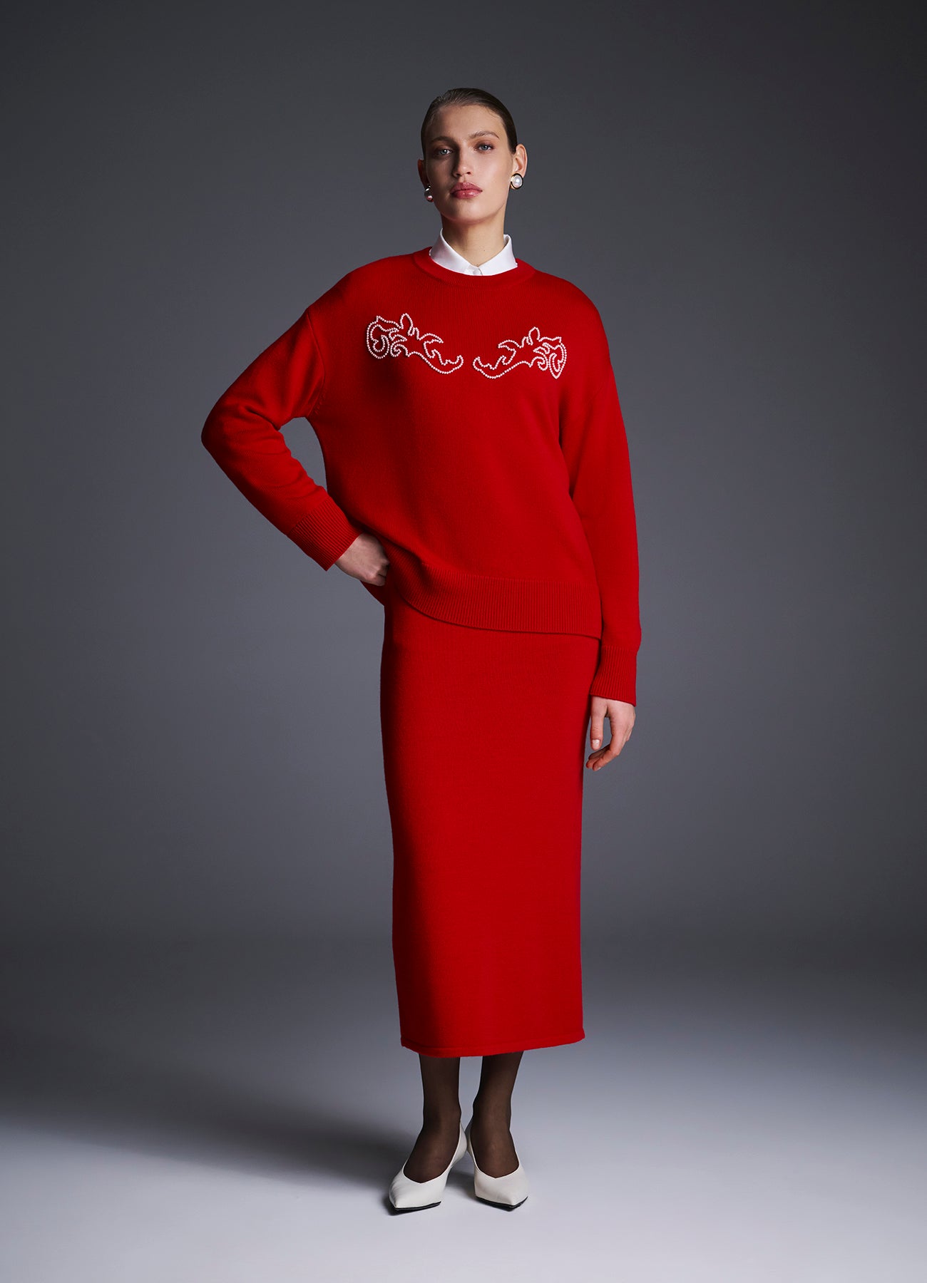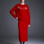 Прямая вязаная юбка из мягкой шерсти мериноса. Плотная фактура обеспечивает идеальную посадку, подчёркивая силуэт без излишнего облегания. Идеально сочетается с джемпером Зарница из комплекта.