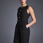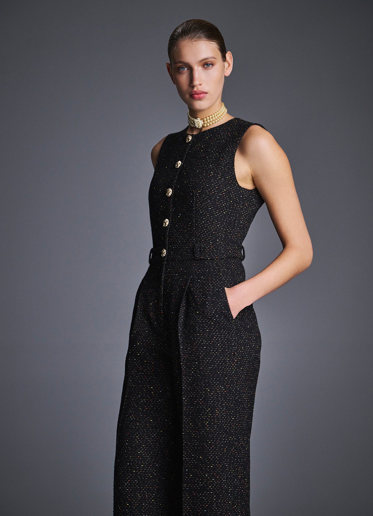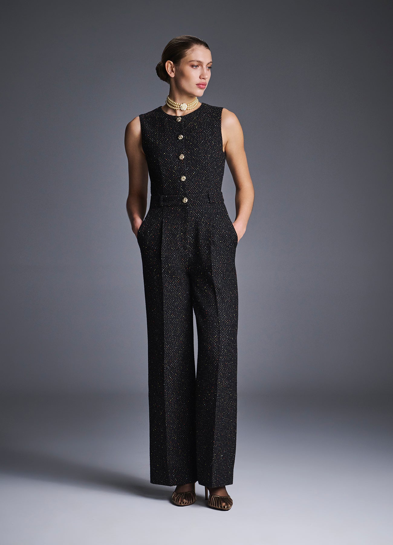 Комбинезон из фактурного букле выполнен из плотной и мягкой ткани на основе шерсти и вискозы, что обеспечивает тепло и максимальный комфорт. Лаконичный силуэт подчеркнут акцентной фурнитурой, а лимитированный тираж делает модель по-настоящему уникальной. Идеально сочетается с топами, рубашками или трикотажем. Для завершения образа рекомендуем добавить декоративный пояс.