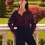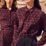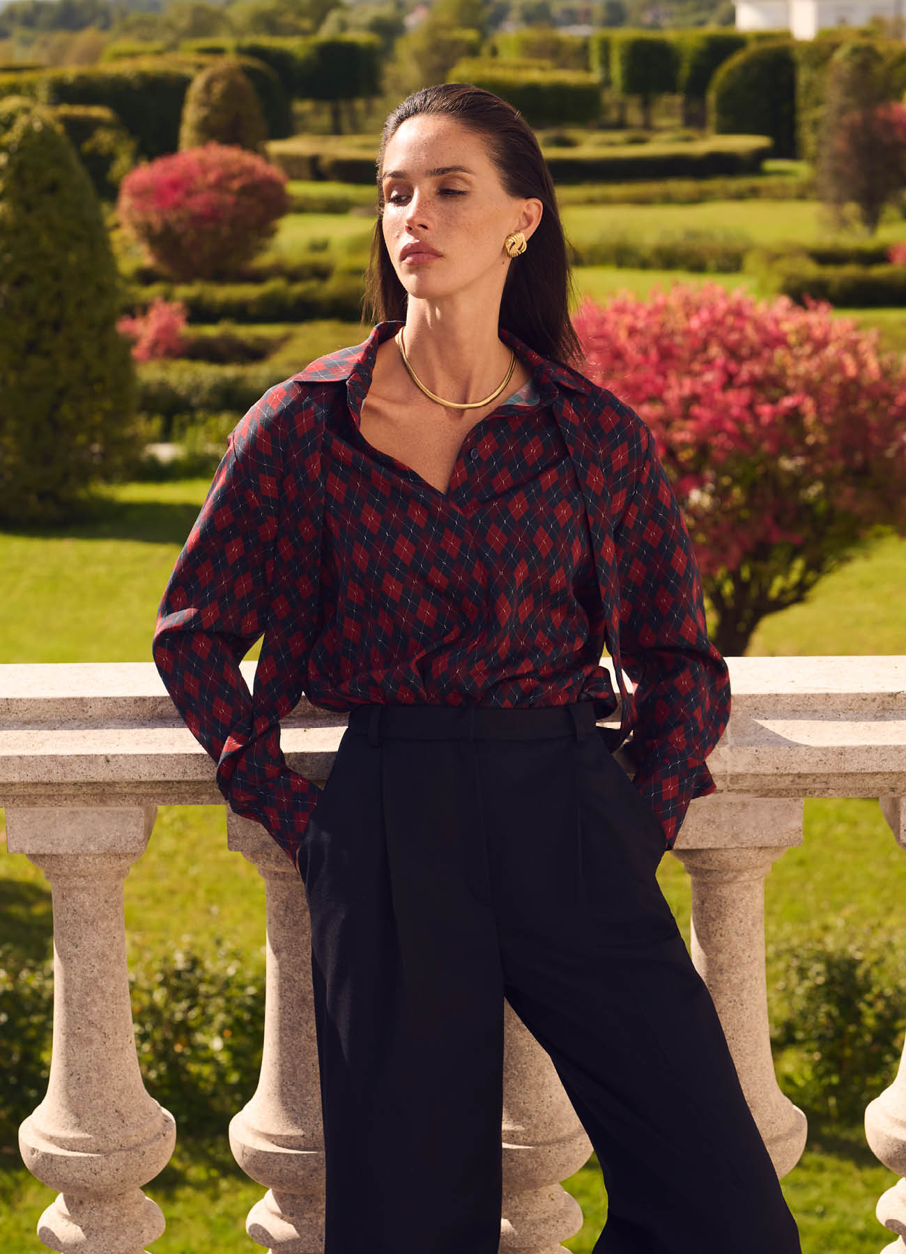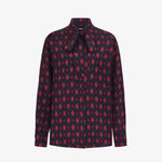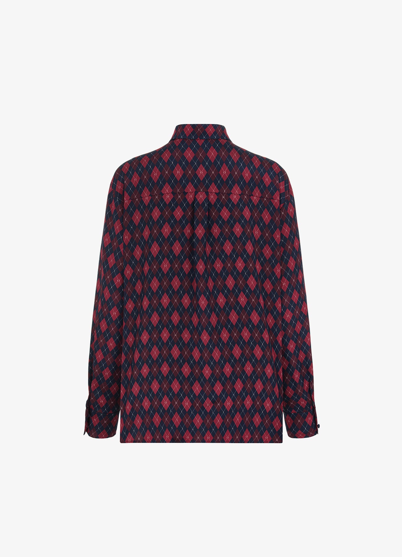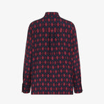 Шелковая блуза с авторским принтом в виде ромбов Argyle и монограммой Roseville. Материал приятен к телу, хорошо держит цвет и красиво драпируется. Прямой крой, съемная деталь-бант, длинный рукав и акцентный воротник с бантом. Комбинируйте с однотонными брюками или юбками.