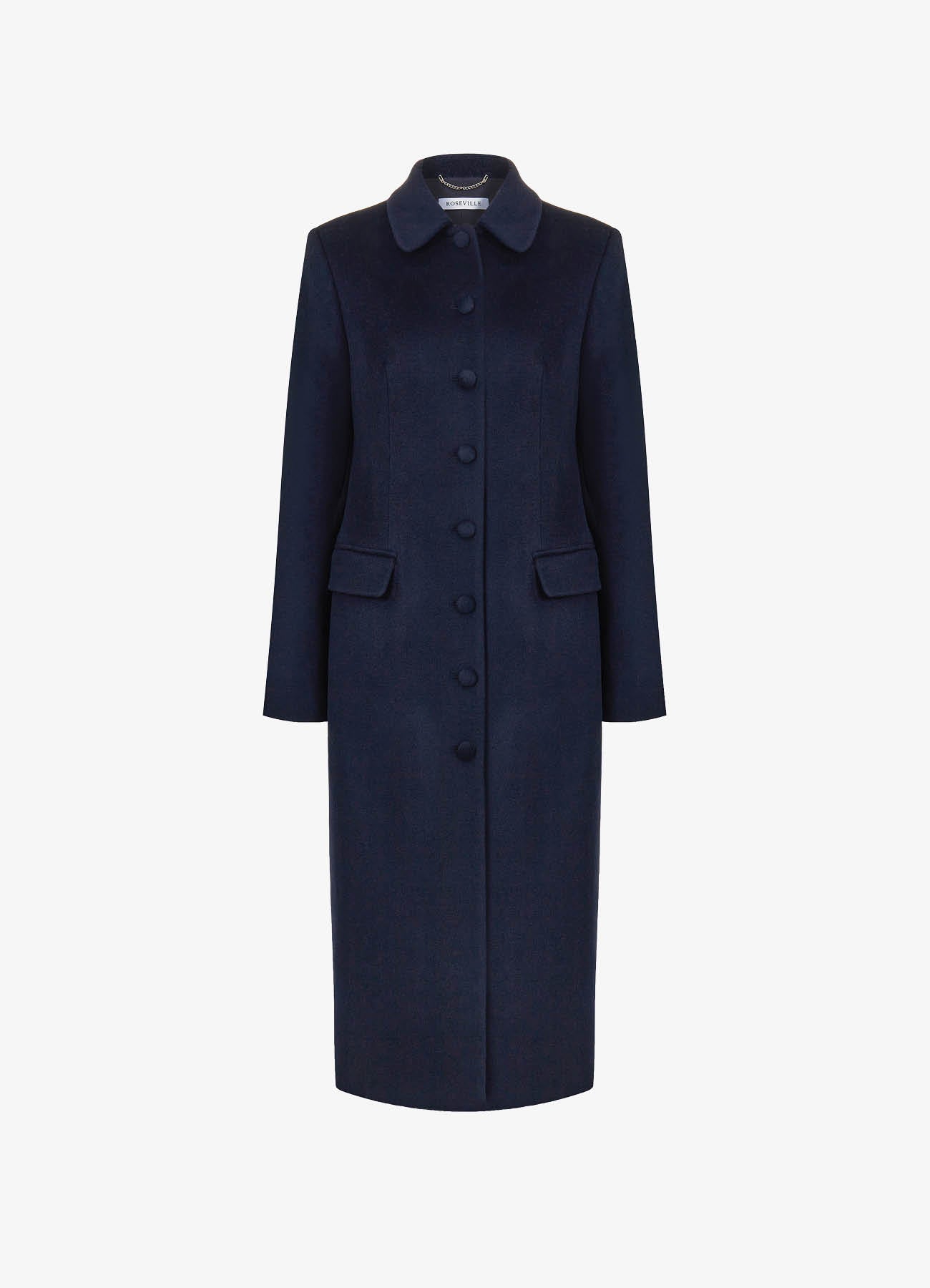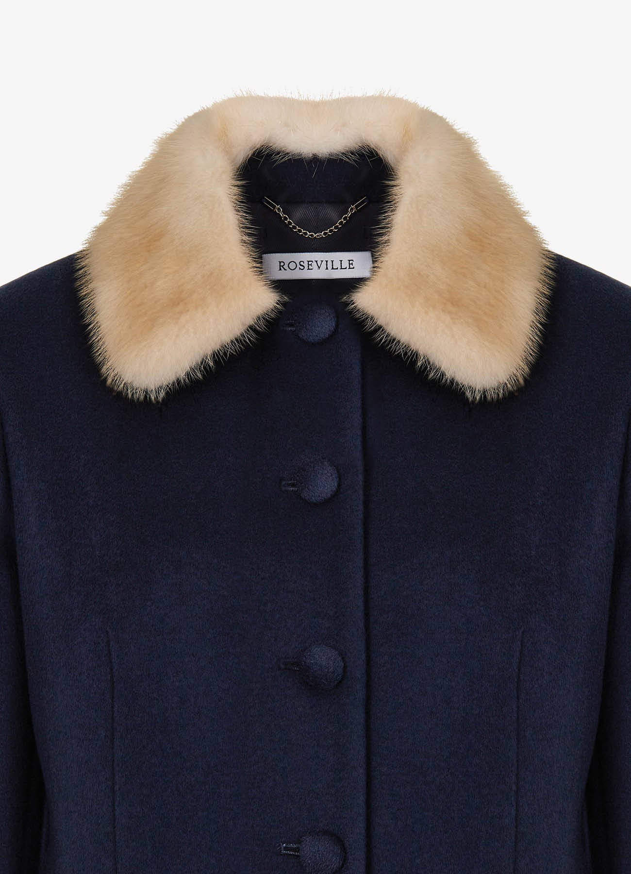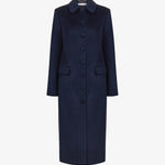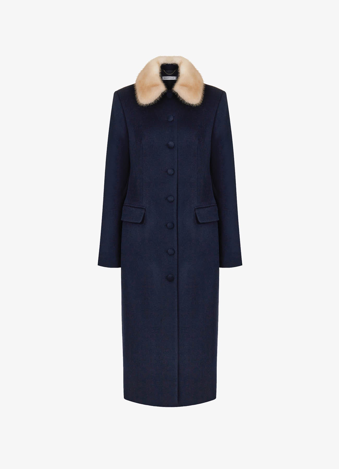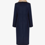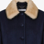 Пальто миди темно-синего цвета. Очерченная линия плеча и прямой силуэт создают элегантный и собранный образ. Воротник дополнен съёмным из меха норки контрастного цвета. Обтяжные пуговицы и кружевной подборт становятся знаками безупречного внимания к деталям. Пальто легко дополнит вечерний образ и станет стильным элементом базового гардероба. На подкладке.