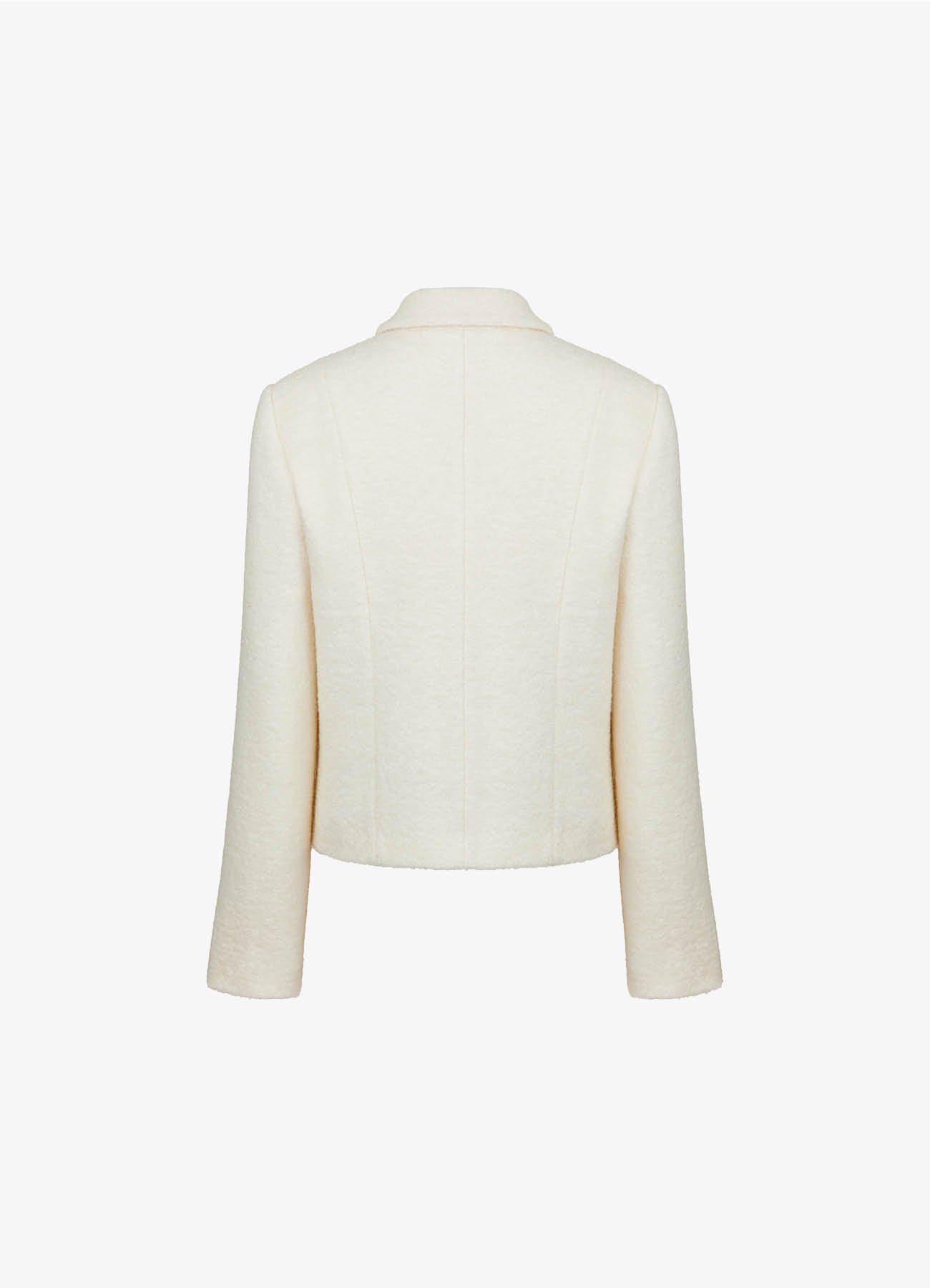 Пальто-жакет из ткани на основе шерсти и вискозы. Прямая укороченная модель с отложным воротником и длинными рукавами. Лаконичный крой, аккуратные карманы и скрытая застёжка формируют чистый, структурированный силуэт. Дополните юбкой-плиссе, брюками или джинсами. На подкладке.