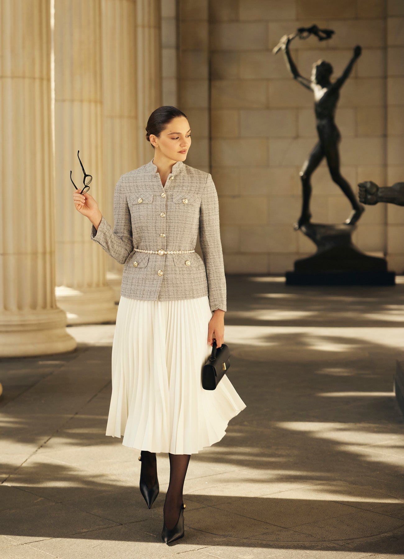 Юбка-плиссе длины миди из крепа - универсальный выбор для офисного дня или расслабленных выходных. Высокая посадка и универсальная длина моделируют силуэт. Материал не мнется даже после хранения в сложенном виде. Сочетается с жакетами, блузами и топами.