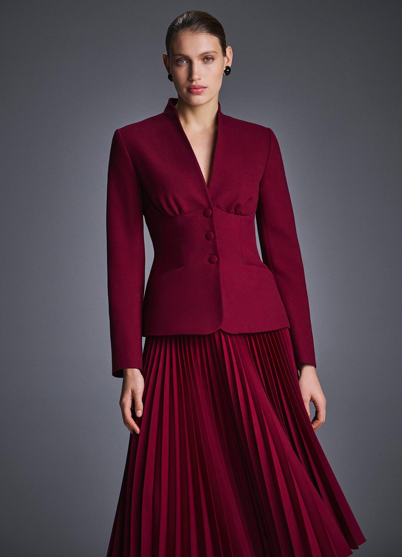 Приталенный жакет из мягкой костюмной ткани с поясом, подчёркивающим талию. Обтяжные пуговицы в тон, аккуратный вырез без воротника. Носите с юбкой из комплекта для эффектного total-look или c базовыми брюками и джинсами. На подкладке.