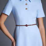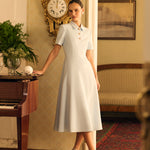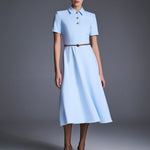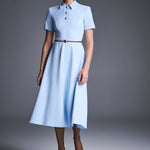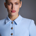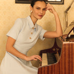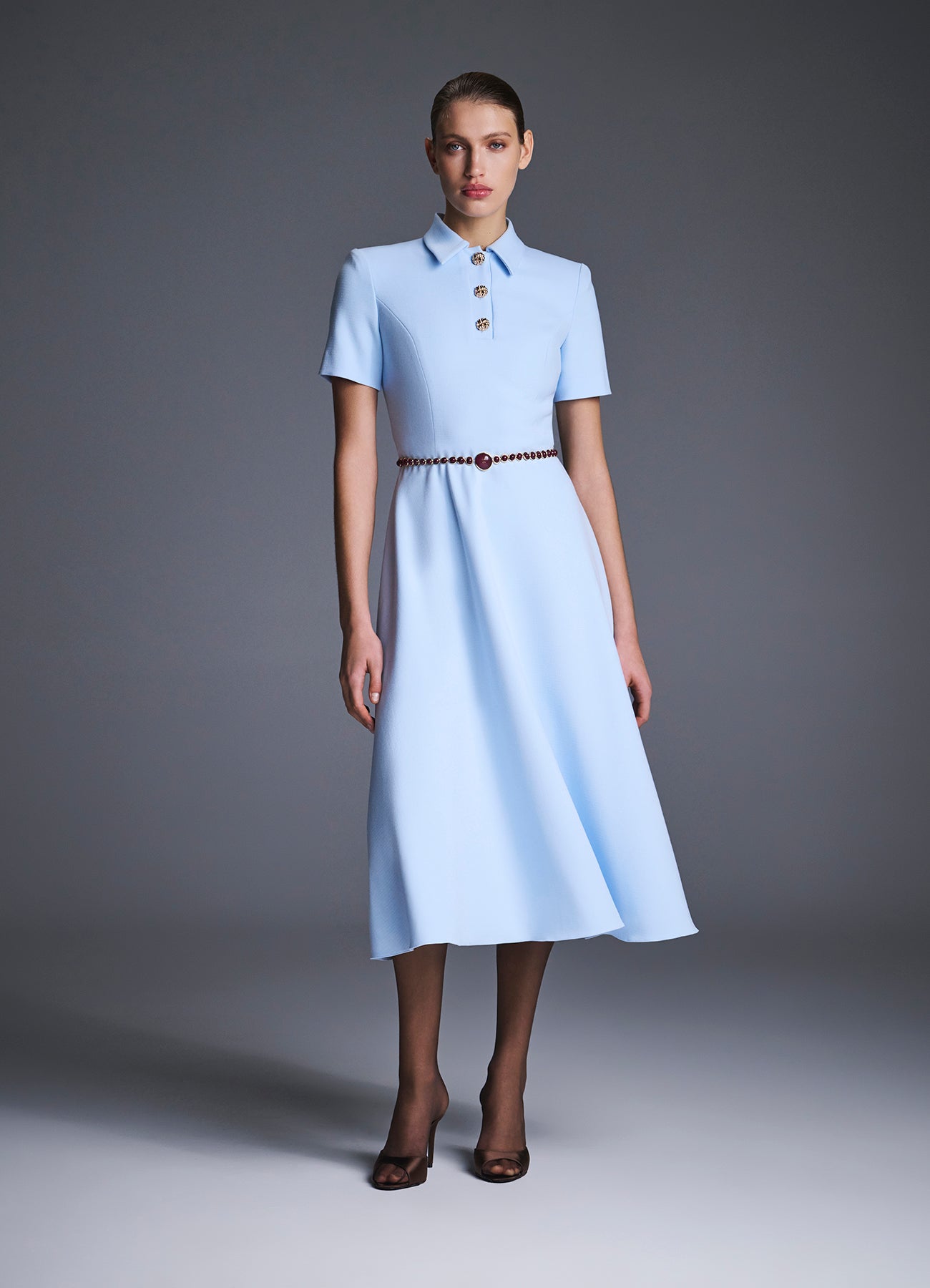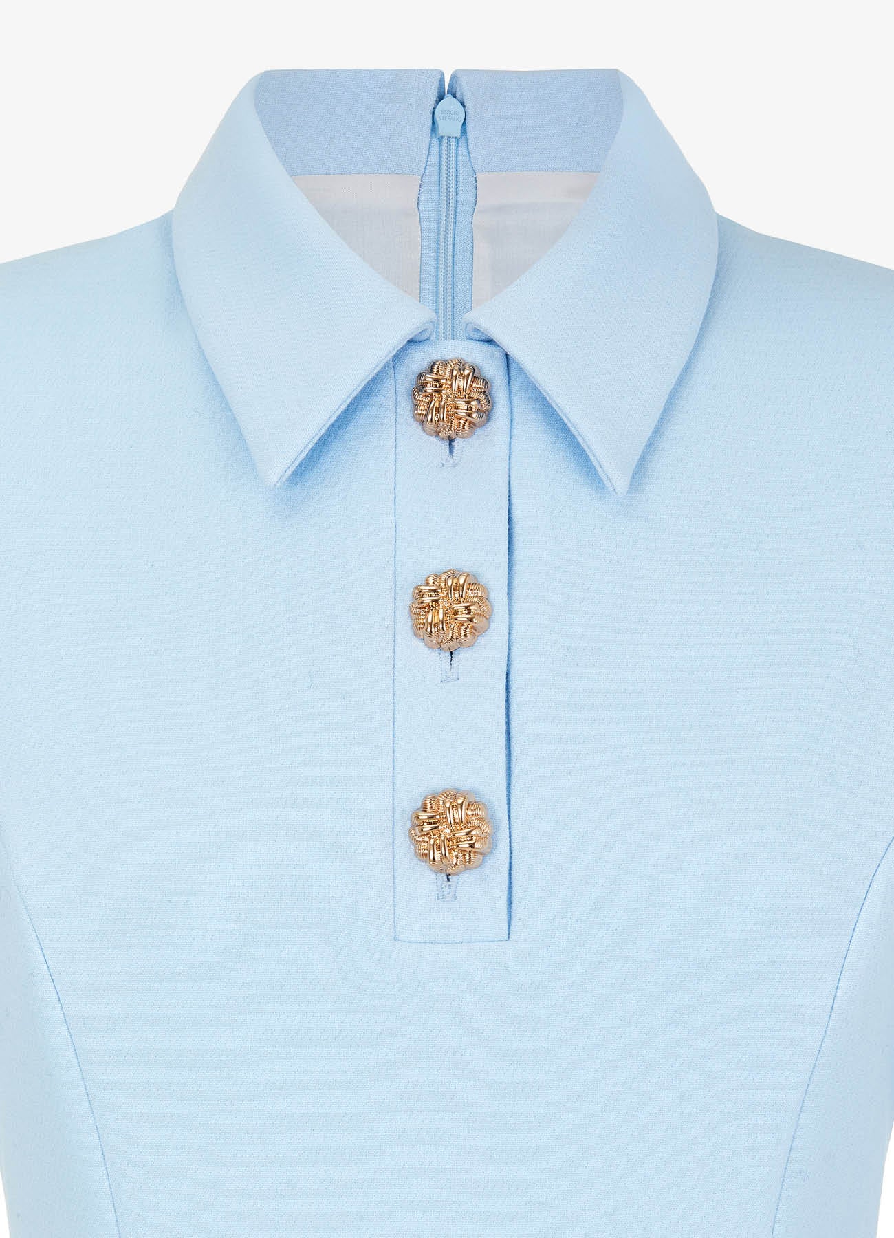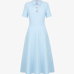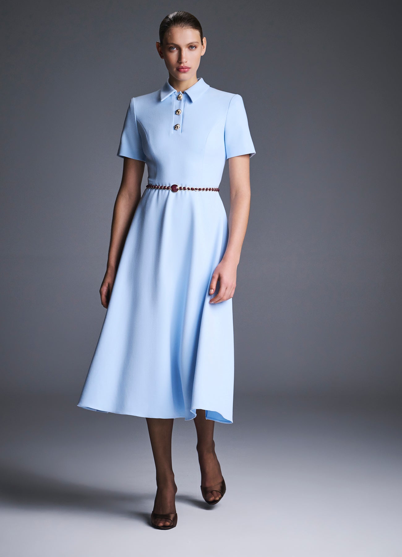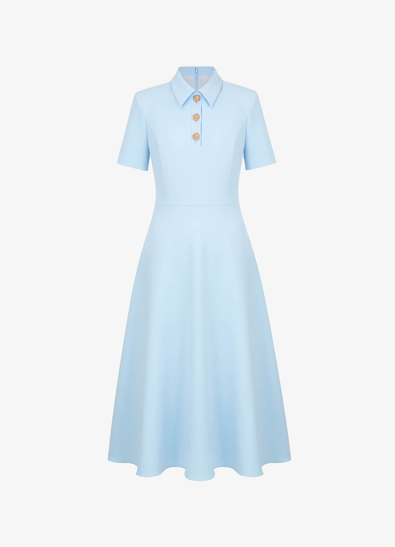 Платье миди из костюмной ткани с акцентными пуговицами золотого цвета. Приталенный верх плавно переходит в юбку А-силуэта, подчеркивая талию. Универсальная модель, которая подходит для офиса и повседневных встреч. На подкладке.