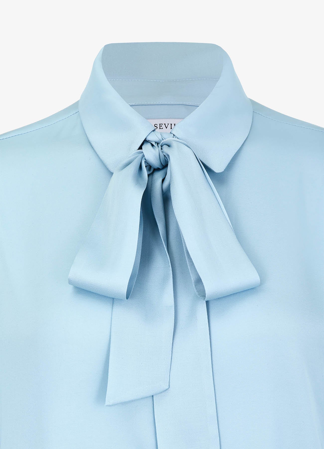 Элегантная блуза из гладкой ткани на основе вискозы и хлопка. Модель нежно-голубого цвета дополнена бантом на воротнике, который создаёт акцент и позволяет варьировать образ от делового до романтичного. Прямой силуэт и скрытая планка с пуговицами. Натуральный состав обеспечивает комфорт в течение всего дня. Идеально сочетается с юбками, брюками и жакетами, гармонично вписываясь как в офисный, так и в повседневный гардероб.