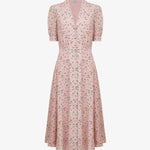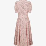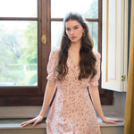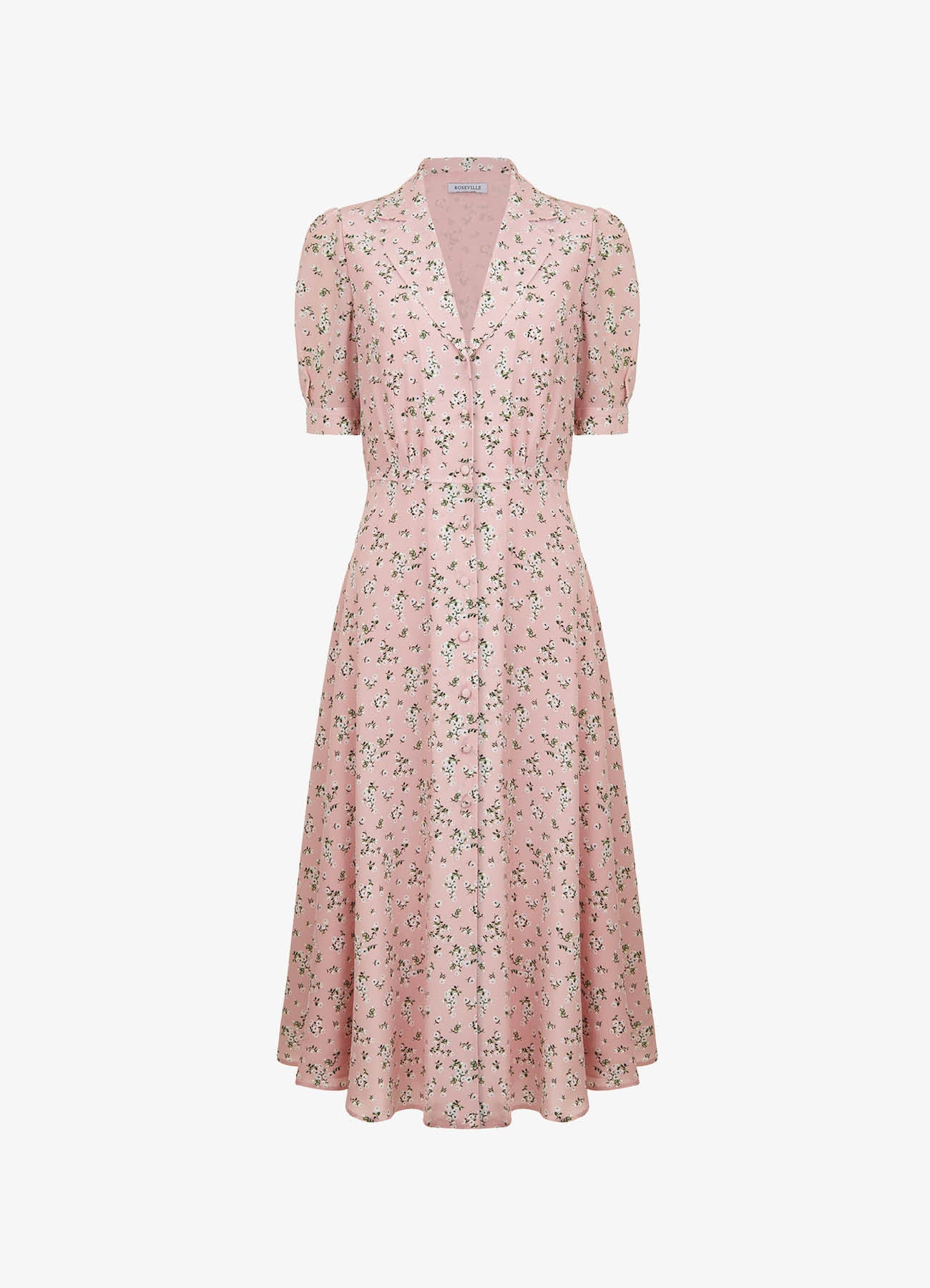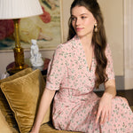 Платье Anna из натурального матового премиального шелка с авторским принтом в виде садовых роз. Платье вдохновлено неспешными чаепитиями, солнечными утрами за любимой книгой и теплыми воспоминаниями. Модель выполнена как платье-рубашка с отложным воротничком, небольшими обтяжными пуговицами и юбкой А-силуэта со складками.