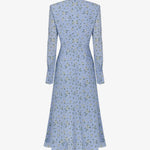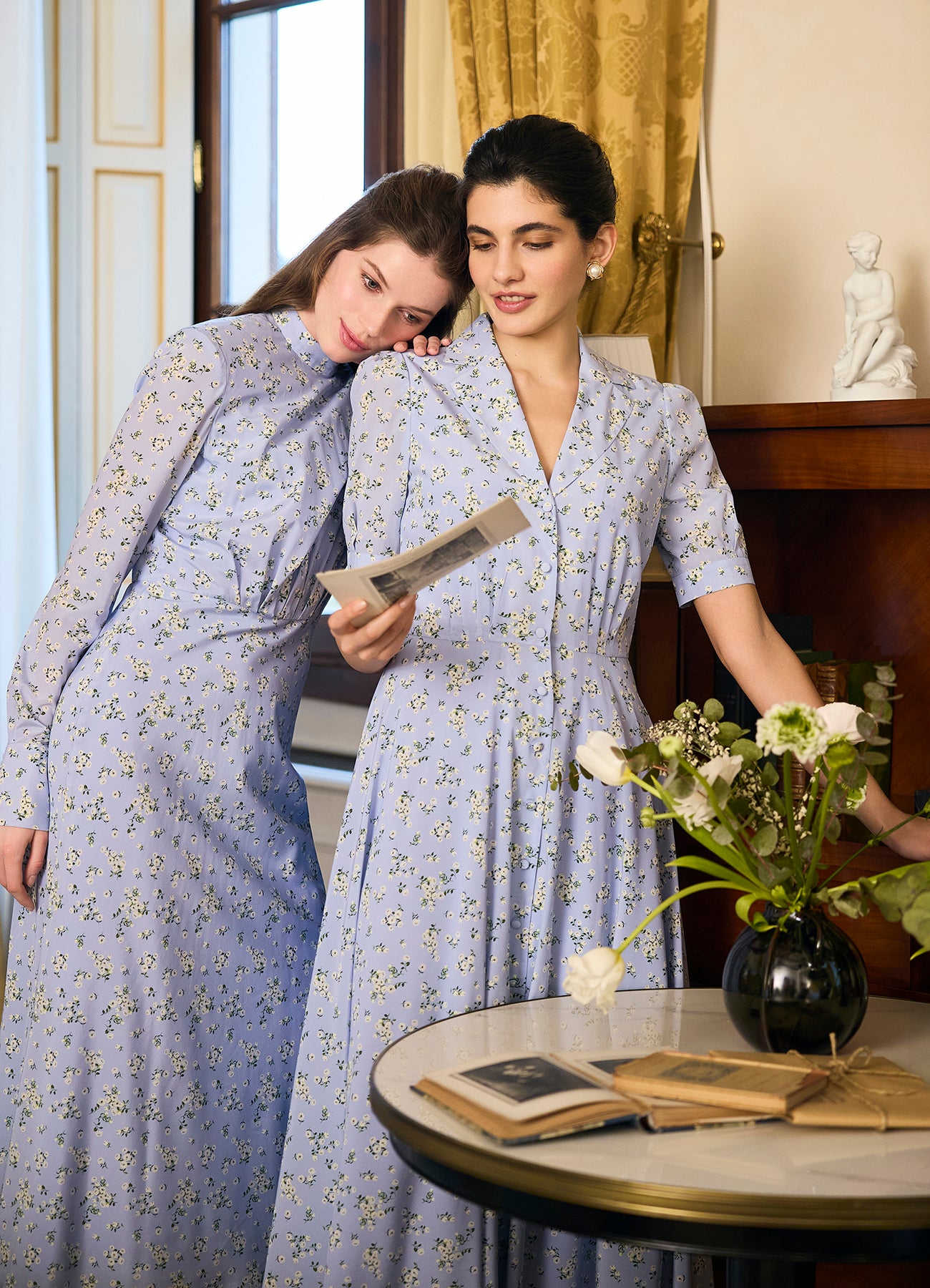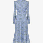 Платье Nina из натурального матового премиального шелка с авторским принтом в виде садовых роз. Платье вдохновлено неспешными чаепитиями, солнечными утрами за любимой книгой и теплыми воспоминаниями. Модель с аккуратным воротником-стойкой, небольшими подплечниками и расклешенной юбкой. На подкладке.