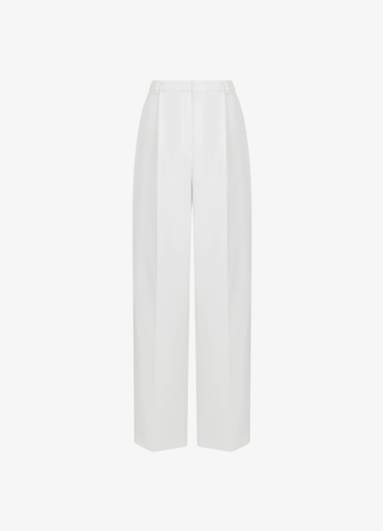 Брюки прямого силуэта. Высокая посадка и заутюженные стрелки удлиняют силуэт и подчеркивают фигуру. Застёжка на классическую брючную молнию, потайную пуговицу и металлические крючки. Сочетайте с жакетом «Купава» для вечернего образа. На подкладке.